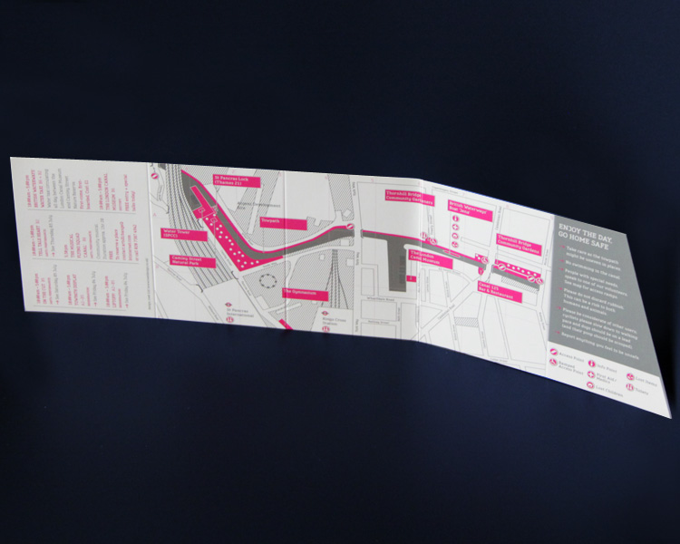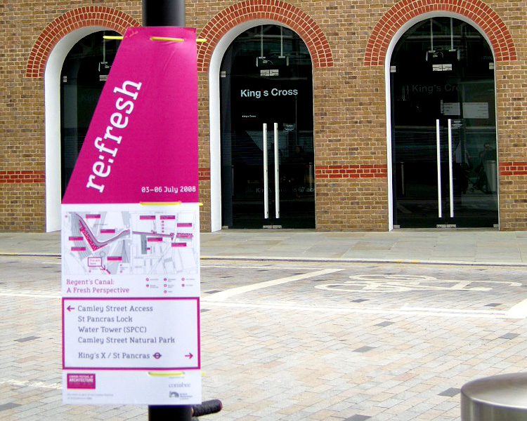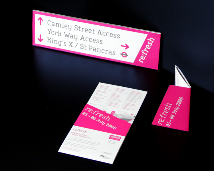 Map-guide, information design and on-the-day signage plus event website and bespoke typeface for the London Festival of Architecture 2008 Regent Canal Events commissioned by British Waterways