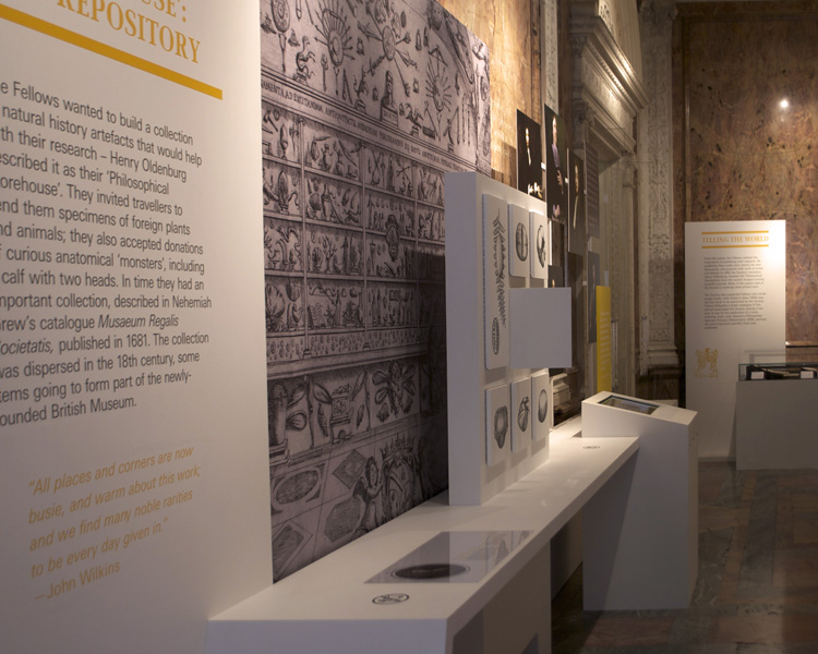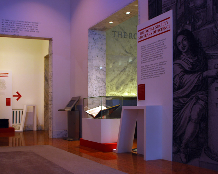 Design for an exhibition celebrating the Royal Society’s 350th Anniversary. We designed the exhibition graphics, furniture and interactive interpretation walls for this amazing collection of scientific history.
